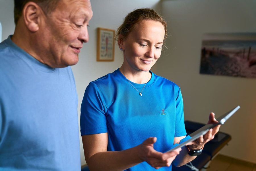 Unsere Therapeutinnen und Therapeuten analysieren zunächst die aktuelle Situation: Beweglichkeit, Kraft, Gangbild, Haltung sowie eventuelle Schmerz- oder Fehlbelastungsmuster. Auf dieser Grundlage erstellen wir einen Trainings- und Übungsplan, der Schritt für Schritt an das persönliche Leistungsniveau angepasst wird.