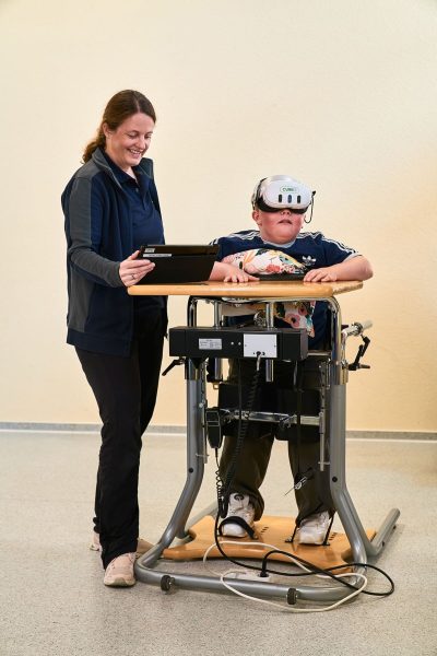Nach einer umfassenden Eingangsanalyse planen unsere speziell geschulten Therapeut*innen individuelle VR-Trainingsprogramme. Die Cureo VR-Therapie wird häufig mit anderen neurologischen Verfahren kombiniert, z. B. Lokomat-, C-Mill-, Armeo- oder klassischer Gang- und Gleichgewichtstherapie. Jede Einheit wird kontinuierlich angepasst, sodass das Training optimal auf Fähigkeiten, Tagesform und Fortschritte abgestimmt ist.